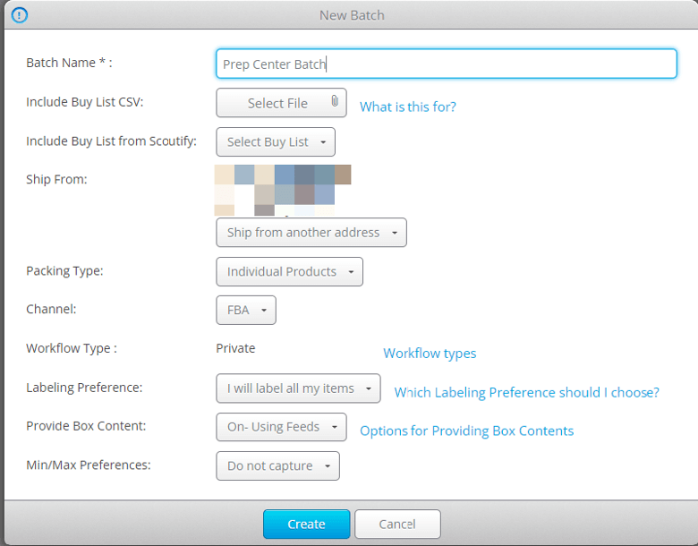 Once your employee status is confirmed, it’s time to start listing! If your prep center is responsible for batch creation, this will take place on the List & Prep page of InventoryLab. When setting up a new batch, you’ll have the opportunity to tailor your preferences to your liking. These options include selecting the batch name, ship-from address, packing type, fulfillment channel, workflow type, and labeling preferences. You can also import your buy list from Scoutify or use a .CSV file you created, but we’ll cover that in more detail next!