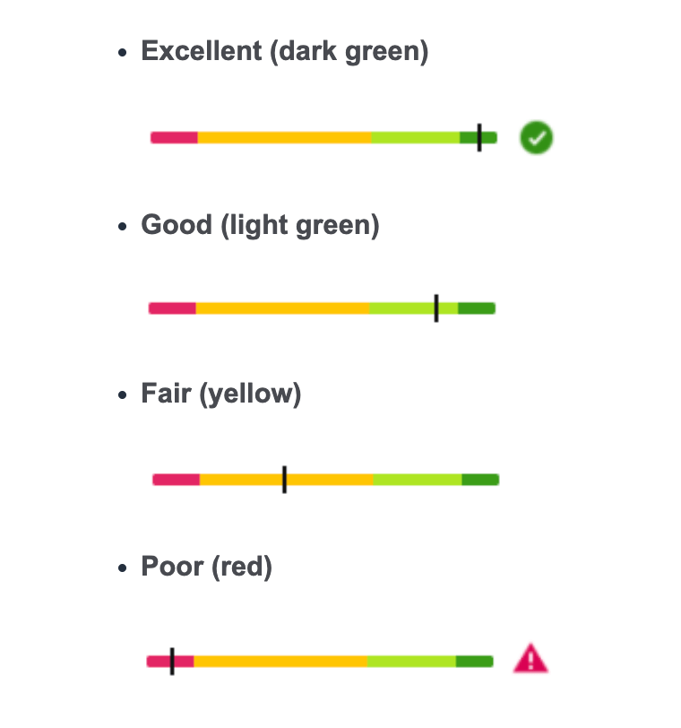 Amazon breaks down your inventory performance into four main areas, each with its own performance meter that shows how you’re doing. These meters range from excellent performance down to poor, with color coding to make it obvious where you stand.
